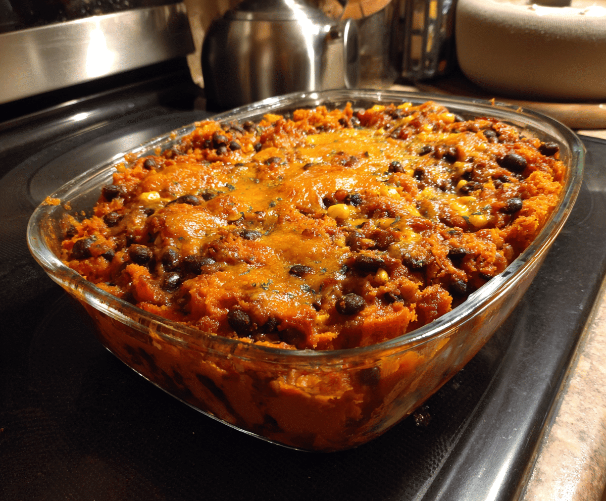 Enjoy our protein-packed southwest sweet potato and black bean casserole. A vegetarian one-dish meal with bold Tex-Mex flavors!