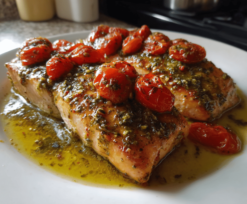 . Wrapped in Prosciutto: For a show-stopping variation, wrap each salmon fillet in a thin slice of prosciutto before applying the pesto and baking. The prosciutto crisps up beautifully while adding a salty dimension that contrasts wonderfully with the sweet tomatoes. This method also helps seal in moisture for exceptionally tender salmon.