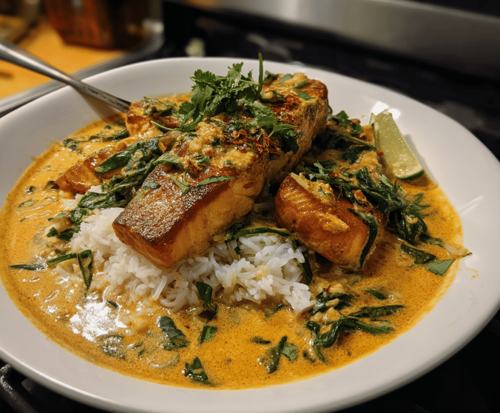 Make-Ahead Strategy: Prepare the curry base (everything except salmon and quick-cooking vegetables) up to 2 days ahead. When ready to serve, reheat the base, then add the salmon and vegetables as instructed. This meal prep strategy reduces final cooking time to just 15 minutes while preserving the fresh-cooked quality.