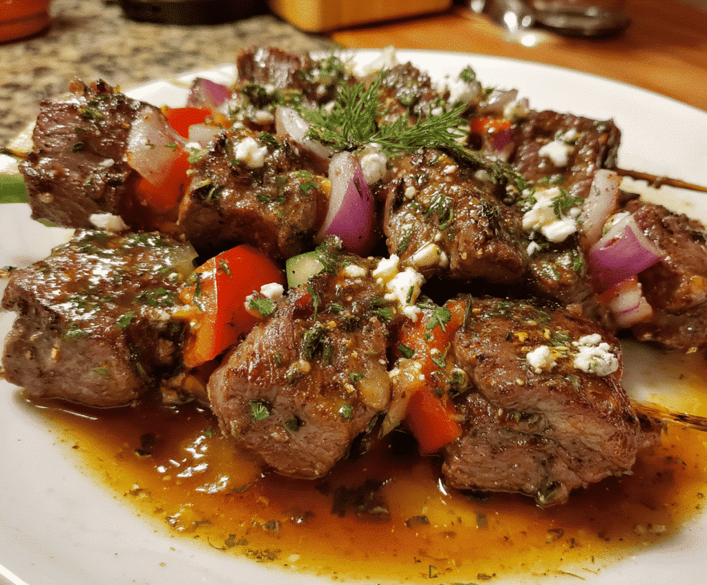 Absolutely! The marinade in this recipe works beautifully with firm tofu, tempeh, seitan, or portobello mushrooms. For plant-based protein options, reduce the cooking time to 2-3 minutes per side for tofu or 4-5 minutes per side for mushrooms. You’ll get the same delicious Greek flavor profile in a vegetarian-friendly format.