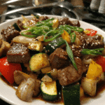 . Classic Asian-inspired presentation: Serve over steamed jasmine rice with a sprinkle of sliced green onions, toasted sesame seeds, and a side of quick-pickled cucumbers. The aromatic rice soaks up the savory sauce while the pickles provide a refreshing contrast.